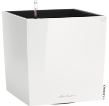Bac à plantes Lechuza Cube 40 set complet blanc avec système d’arrosage en terre bac d'arrosage substrat indicateur de niveau d’eau