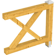 La balustrade décorative SKAN HOLZ avec croix de Saint André massives en bois massif de construction est adaptée aux pavillons SKAN HOLZ en bois lamellé-collé avec un écart entre les poteaux d'au moins 270 cm.