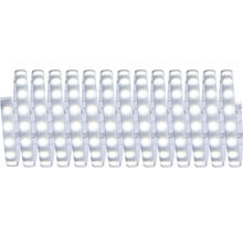 Les bandes MaxLED 500 avec 26 W sont si puissantes qu'elles peuvent sans problème être utilisées pour l'éclairage d'une pièce et peuvent être contrôlées de façon intelligente grâce à la fonction Zigbee intégrée. La commande de lumière blanche Tunable White permet de régler la couleur de l'éclairage de façon individuelle et en continu – depuis le blanc lumière du jour pour le travail jusqu'au blanc chaud pour la détente, tout est possible. Le kit de base contient, outre les bandes avec revêtement (Protect Cover) d'une longueur de 5 m, un régulateur de puissance adapté et un contrôleur Zigbee qui permet de le contrôler de façon intelligente. Zigbee est un protocole de transmission radio qui permet de connecter des appareils de différents fabricants. Le régulateur de puissance contient un tampon de puissance supplémentaire, ce qui permet de l'étendre sans outils avec des bandes supplémentaires selon les besoins. Les bandes MaxLED sont de véritables éléments phares en particulier dans les profils. Paulmann propose également un vaste assortiment de profils de montage en saillie et encastré adaptés aux bandes MaxLED.