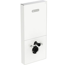 - Contenu dans le matériel fourniCadre de montage avec revêtement avant en 2 parties en blanc et revêtement latéral en acier inoxydable, hauteur de montage 1146 mm, largeur de montage 503 mm, profondeur de montage 108 mm Matériel de fixation Réservoir de chasse d'eau encastré intégré, activation pneumatique par devant Bonde de vidage réglable à 2 quantités, réglage par défaut: 6/3 l Robinet d'équerre verrouillable avec technique SMART VALVE, niveau sonore I Tuyau de rinçage diamètre 45 mm Coude d'évacuation en polypropylène diamètre 90 mm Raccord d'alimentation diamètre 90 / 110 mm Ensemble de raccordement WC diamètre 45/90 mm, longueur 200/300 mm Fixation WC M 12 Plaque de commande prémontée