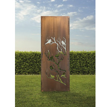 Beau paravent en métal de qualité supérieure. Présente un motif naturel d'oiseaux et peut être planté directement dans le sol du jardin grâce à ses pieds pointus.