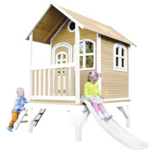Cabane de jeux sur pilotis axi Tom 287 x 191 cm bois marron avec toboggan blanc