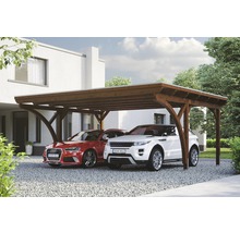 Carport double Konsta panneaux de toiture en aluminium 2 arches et ancrage H compris 618x500 cm noyer