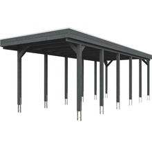 Carport simple SKAN HOLZ Friesland avec panneaux de toiture en aluminium et ancrage pour poteaux en H 314 x 860 cm gris