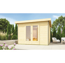 Chalet sauna Karibu Sainburga 1 Set A sans poêle avec vestibule, fenêtre et porte en bois avec verre transparent