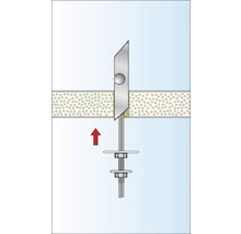 Chevilles à corps creux galvanisées en métal avec battant à soufflet, barre filetée, une grande et une petite rondelle en métal et deux écrous à six pans (SW13). Pour fixer des radiateurs, des chaudières, des lavabos, etc.. Pour un montage mural et au plafond sans autorisation. Pour les plaques de plâtre, de placoplâtre et de matériaux composites, ainsi que des pierres creuses et des plaques de béton précontraint.