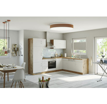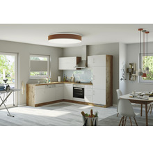 Cuisine en angle Held Möbel Sorrento 210 cm façade blanche mate, corps chêne variante réversible