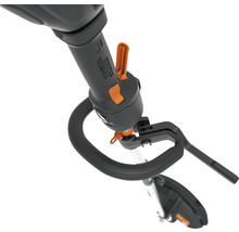 Si vous utilisez le système de fil pour le coupe-bordures, vous atteignez un périmètre de coupe de 38 cm. Le double fil du système est un fil à charge lourde. Il convient pour une utilisation dans un environnement difficile. Tap&Go permet de régler le fil en poussant la tête du fil dans le fond. Avec les lames en acier, vous pouvez travailler avec un périmètre de coupe de 25 cm. Le périmètre de coupe de la lame est certes inférieur au périmètre de coupe du fil, mais les lames stables sont particulièrement adaptées pour les branches épaisses. La fonction ECO du moteur vous permet de régler la vitesse. Pour finir, il n'est pas toujours nécessaire d'utiliser l'appareil à plein régime. Enfin, la poignée réglable doit également être mentionnée, car elle permet de régler l'appareil de 4,1 kg de façon individuelle.