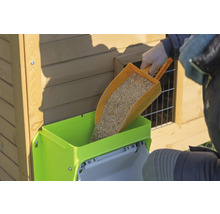 Le distributeur automatique de nourriture Step-on pour oiseaux SmartCoop offre aux volailles un accès continu à la nourriture. La trémie à pédale du distributeur automatique de nourriture ne s'ouvre que lorsque la poule marche sur la pédale et se referme dès que celle-ci s'en va. Même les petites poules peuvent accéder à la pédale tandis que l'accès au distributeur automatique de nourriture reste très compliqué pour les rongeurs (souris ou rats). La compatibilité avec d'autres pièces SmartCoop offre aux volailles un accès confortable à la nourriture. Possibilité d'extension du distributeur automatique de nourriture jusqu'à 7,5 kg grâce à la rehausse de distributeur.