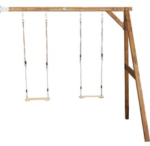 Le support de balançoire est composé de poutres de 7 cm d'épaisseur en 100% bois de hemlock FSC, provenant de forêts exploitées de manière durable.