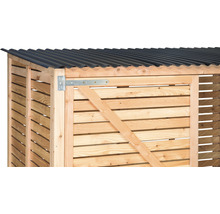 Garage à vélo au design rectiligne moderne en sapin de Douglas non traité. La structure perméable à l'air permet une bonne circulation de l'air. Le débord de toit d'env. 5 cm de chaque côté et la légère pente de toit protègent efficacement le vélo de la pluie. Grâce à ses dimensions généreuses, il permet d'abriter non seulement les vélos dans un endroit sec et sécurisé mais les outils de jardin sont eux aussi bien rangés dans ce garage à vélo.