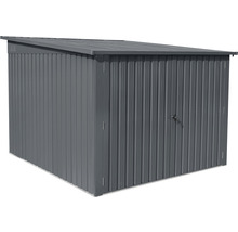 Le garage à vélos Vario est fabriqué en tôle d'acier stable et peint en anthracite. Le garage à vélos ultra long peut accueillir des vélos d'une longueur totale allant jusqu'à 210 cm. En outre, les 3 rails de guidage sont à largeur variable, de sorte que des vélos avec une largeur de roue jusqu'à 11 cm peuvent être stationnés confortablement. Les étriers de fixation inclus dans le contenu de la livraison sécurisent les roues pour les empêcher de rouler. La grande porte à deux vantaux verrouillable permet un chargement et un déchargement confortables. Les grilles d'aération latérales assurent une bonne circulation de l'air et l'eau de pluie est évacuée par le système d'évacuation de l'eau. Les vélos jusqu'à une taille de roue de 28“ peuvent être rangés confortablement dans le garage à vélos. La capacité de charge est de 90 kg/m2. Largeur 217 cm, profondeur 236 cm, hauteur 145/165 cm.