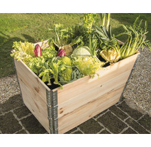 Ce système de jardinière surélevée enfichable vous offre toutes les possibilités. Vous pouvez définir librement la hauteur et la forme et vous avez également le choix de la couleur entre l'épicéa naturel et le pin Douglas ou vous pouvez également définir la couleur de votre choix pour la jardinière surélevée.