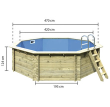 Kit de piscine hors sol en bois Karibu Classic 2A ronde Ø 470x124 cm avec échelle et tapis de sol bois