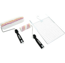 - Contenu dans le matériel fourniÉtrier radiateur pour rouleau court et long, rouleau à peinture 27 cm, rouleau à peinture 12 cm, grille d'essorage