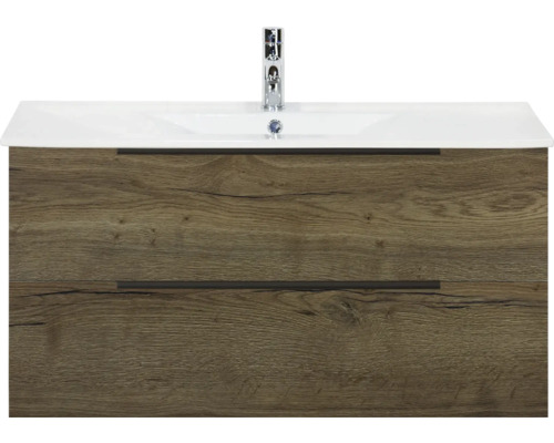 Lavabo en céramique avec meuble sous lavabo Sanox Seville lxhxp 100 cm x 52 cm x 46 cm couleur de façade tabacco