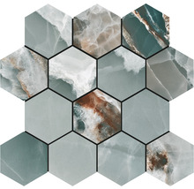 Mosaïque en grès cérame fin Hexa Lima turquoise pulido 29x27x0,9 cm