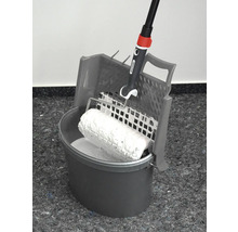 La grille d'essorage multifonctions séduit par sa fixation sûre sur le seau de peinture à l'aide des languettes de fixation supplémentaires. L'utilisation rehaussée de la grille d'essorage garantit une absorption optimale de la peinture même lorsque le seau est plein. L'emplacement de la grille permet une répartition uniforme de la peinture, pour une application homogène de la peinture. Le surplus de peinture coule dans le seau et ne forme pas de gouttes de peinture inutiles. Par ailleurs, au verso se trouvent des crochets de suspension pour les pinceaux et les outils de peinture.