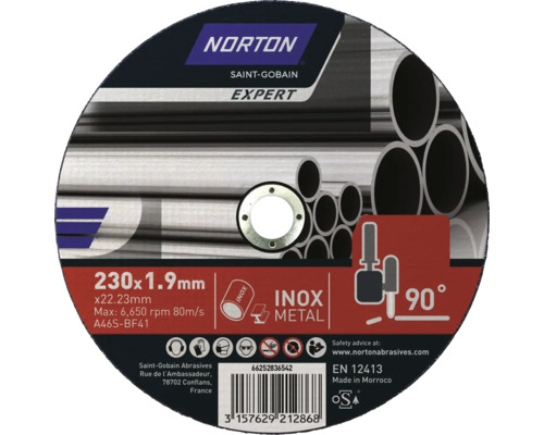 Norton Disque à tronçonner Expert Métal et Inox Ø 230 x 22,23 mm