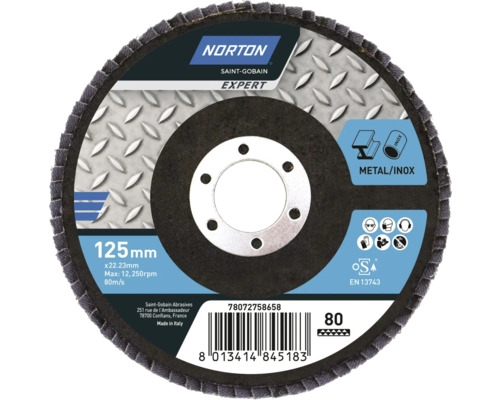 Norton Disque abrasif à lamelles Expert métal et inox Ø 125 x 22,23 mm grain 80 10 pièces