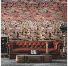 Papier peint panoramique intissé 39246-1 The Wall II vieux mur en pierres gris rouge 3 pces 159 x 280 cm