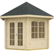 Pavillon en madriers SKAN HOLZ Madeira avec plancher et 2 fenêtres 420 x 373 cm naturel