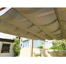 Pavillon/Pergola en aluminium avec voile d'ombrage réglable Le pavillon en aluminium ultra moderne Florenz avec voile d'ombrage intégrée est un must pour votre jardin! Ce pavillon est composé d'une construction en aluminium résistante à la rouille: très stable, sans entretien et durable. Le must: l'aspect bois plus vrai que nature confère à ce pavillon un design extrêmement noble et s'adapte du point de vue visuel à tous les jardins ou terrasses. La voile d'ombrage intégrée en polyester & nylon résistants aux UV assure une ombre agréable pour les températures estivales. La voile peut être utilisée de façon flexible et peut être déployée ou repliée en fonction des besoins. Les quatre piliers sont fixés au sol avec des vis. Des caches élégants permettent de dissimuler les vis pour une finition esthétique. Ce pavillon haut de gamme est conçu pour pouvoir être utilisé toute l'année et peut sans problème passer l'hiver dehors. Nous recommandons de stocker la voile d'ombrage en intérieur pendant les mois d'hiver. Le montage est simple et peut sans problème être réalisé en quelques heures par 2 personnes. Les instructions claires et illustrées aident au montage. Pas besoin d'outils spécifiques. Nous recommandons comme support une surface plane en bois, béton ou en pavés. Le kit de vis avec écrous pour l'ancrage au sol est fourni. Vos avantages: - Structure en aluminium inoxydable et durable - Aspect bois noble - Avec voile d'ombrage résistante aux UV (UPF10) - Avec ancrage au sol comme fixation optionnelle