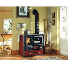 Poêle à feu continu Nordica Extraflame Rosa couleur du foyer rouge matériau plaque de cuisson 6,5 kW