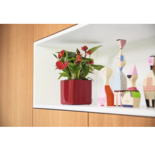 Pot de fleurs Lechuza Cube Glossy plastique 14x14x14 cm rouge avec système d’arrosage en terre et bac d'arrosage