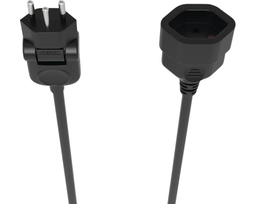 Rallonge électrique MOVE5m T12/T13, noire, H05VV-F 3G1.0mm2 avec prise pivotante et rabattable 270° - 180°