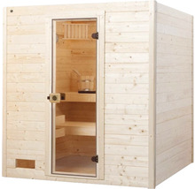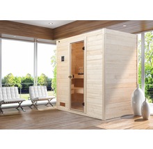 Sauna en bois massif Weka Valida GT taille 2 avec poêle 4,5 kW et commande numérique, sans fenêtre avec porte entièrement vitrée en verre transparent
