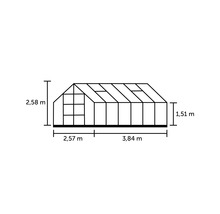 Sortez votre bêche et creusez une surface de 257 x 384 cm. Votre nouvelle serre Halls s'y tiendra bientôt. Elle a une surface utile de 9,9 m² – soit assez de place pour votre propre petit monde de plantes vertes. Grâce à ses murs de 6 mm d’épaisseur, elle est à l’abri des intempéries.