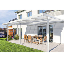 Toiture de terrasse gutta Premium polycarbonate rayures blanches 611 x 406 cm blanc