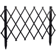 Ce treillis polyvalent vous offre une variété d’options de conception dans le jardin et aussi sur la terrasse. La longueur du tuteur extensible est d'environ 160 cm, mais peut également être modifiée en le déployant davantage. Les piquets de la grille à treillis sont équipés de piquets de terre pour les sols mous ainsi que de pieds d’appui en option pour la terrasse. Selon les besoins, le treillis peut être placé à l’extérieur et recouvert de plantes grimpantes. De cette façon, la clôture en treillis est également idéale comme élément de séparation et comme brise-vue. Le treillis noir est en bois de pin certifié FSC® (Pinus sylvestris, essence principale) et est lasuré pour résister aux intempéries. La fabrication dans une production européenne s'effectue de façon artisanale et se concentre sur la qualité de traitement.