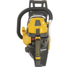 C'est une occasion à ne pas manquer: le moteur à 2 temps de la tronçonneuse à essence CS 750 avec une cylindrée de 46,5 cm³ produit 2 kW ou 2,72 chevaux. Le moteur peut être démarré facilement avec le câble de démarrage. Au préalable, vous devez de préférence vérifier si le réservoir de carburant de 0,47 l contient encore suffisamment de carburant. Si ce n'est pas le cas, vous pouvez remplir l'appareil avec un mélange d'huile et d'essence (1:40). En outre, vous pouvez vérifier s'il y a encore suffisamment d'huile dans le réservoir d'huile. L'huile dans le réservoir d'huile de 0,26 l est utilisée pour lubrifier la chaîne. Le CS 750 utilise une lame de 45 cm OREGON, sur laquelle la chaîne est fixée. La chaîne est également fabriquée par OREGON. Elle a une épaisseur de maillon d'entraînement de 1,5 mm et permet une vitesse de la chaîne maximale de 23,1 m/s.