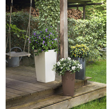 Vase Lechuza Cubico Color plastique Lxl 30 x 30 cm h 56 cm blanc-mat avec système d'arrosage en terre