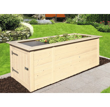 La jardinière surélevée WEKA 669 A en épicéa nordique massif de haute qualité aux parois 21mm d'épaisseur, avec barre filetée supplémentaire pour renforcer les parois latérales, est le système idéal de jardinières pour vos plantes. La hauteur de travail optimale lors de la plantation soulage le dos. La jolie jardinière surélevée à l'état naturel est munie d'un bord large servant de surface de rangement pour vos outils de jardin. Vos ustensiles de jardinage sont toujours rangés et à portée de main grâce à une armoire modulaire intégrée. Ayant des dimensions L 205 x l 79 x H 81 cm, la surface de travail est optimale. La jardinière est fournie avec un film intérieur pour protéger les madriers muraux de l'humidité, un fraisage de protection contre les invasions d'escargots et une grille de protection contre les campagnols ! Le kit à monter soi-même s'installe aisément grâce au système empilable ajusté et une notice de montage détaillée.