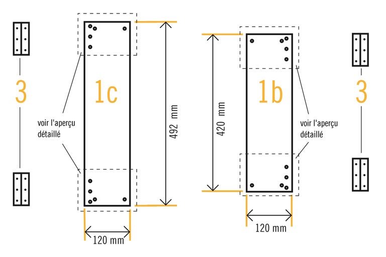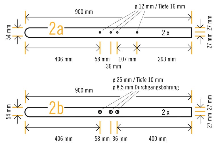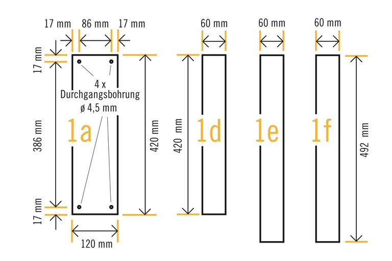 | 1a, 1b | Siebdrucksperrholz | 2x | 420x120 mm |