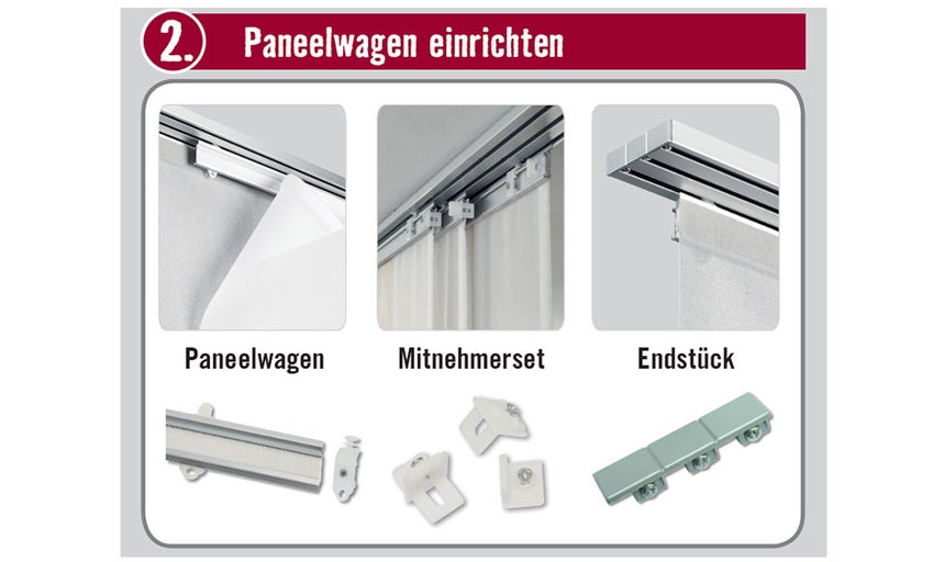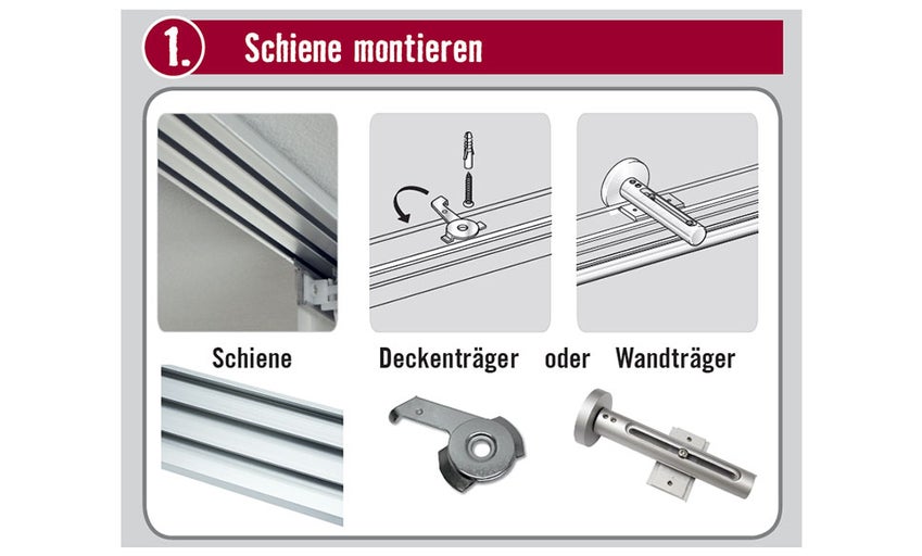 - Massnehmen: Bei Vorhangstangen oder Stahlseil-Aufhängungen nimmt man an der oberen Kante Mass, bei Vorhangschienen von der Decke.