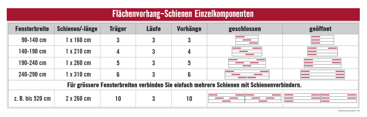 Schiebegardinen können entweder in einer Reihe oder überlappend nebeneinander, in gleichen oder unterschiedlichen Längen angebracht werden.