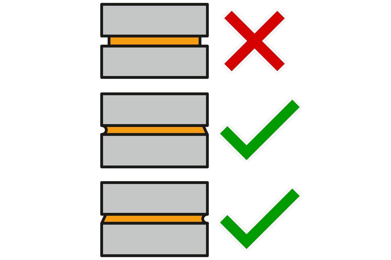 Ist der Strich zu weit oben, dann hast Du wahrscheinlich zu wenig Mörtel benutzt. Ist er zu weit unten, hast Du eventuell zu viel Mörtel benutzt.