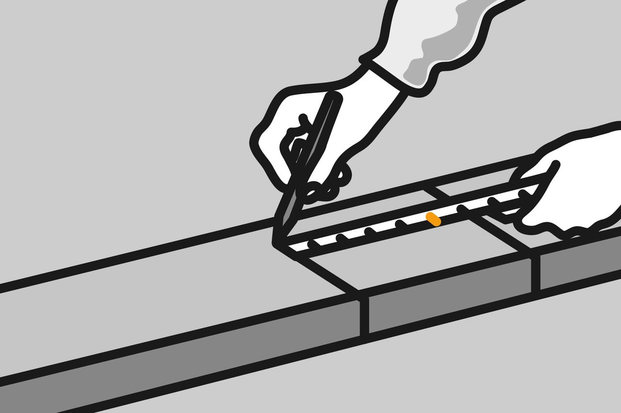 Fülle die komplette Latte mit Linien, immer im selben Abstand.