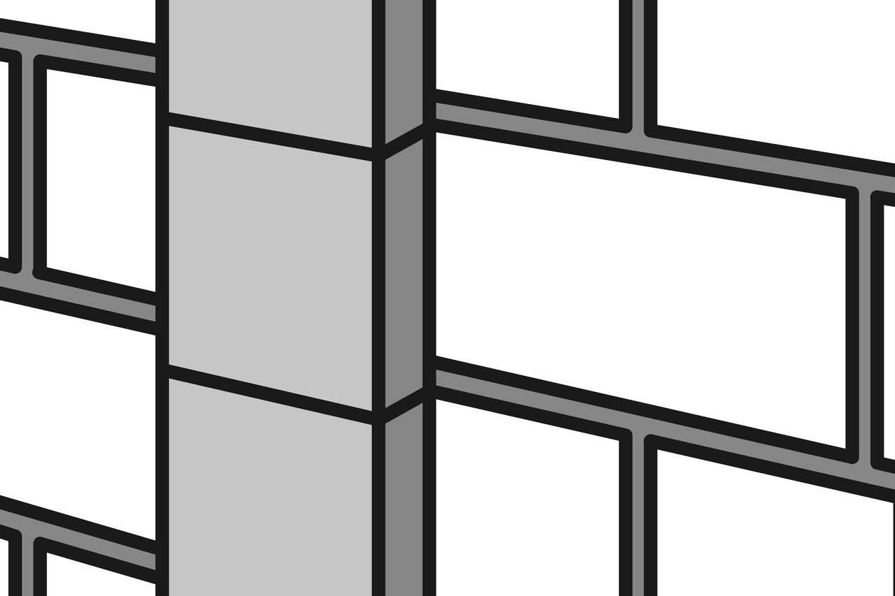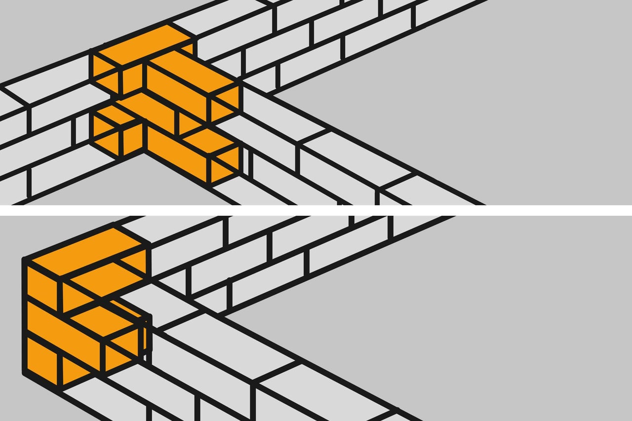 Mauerecken werden so angelegt, dass die Steinschichten abwechselnd bis zur Aussenkante laufen.