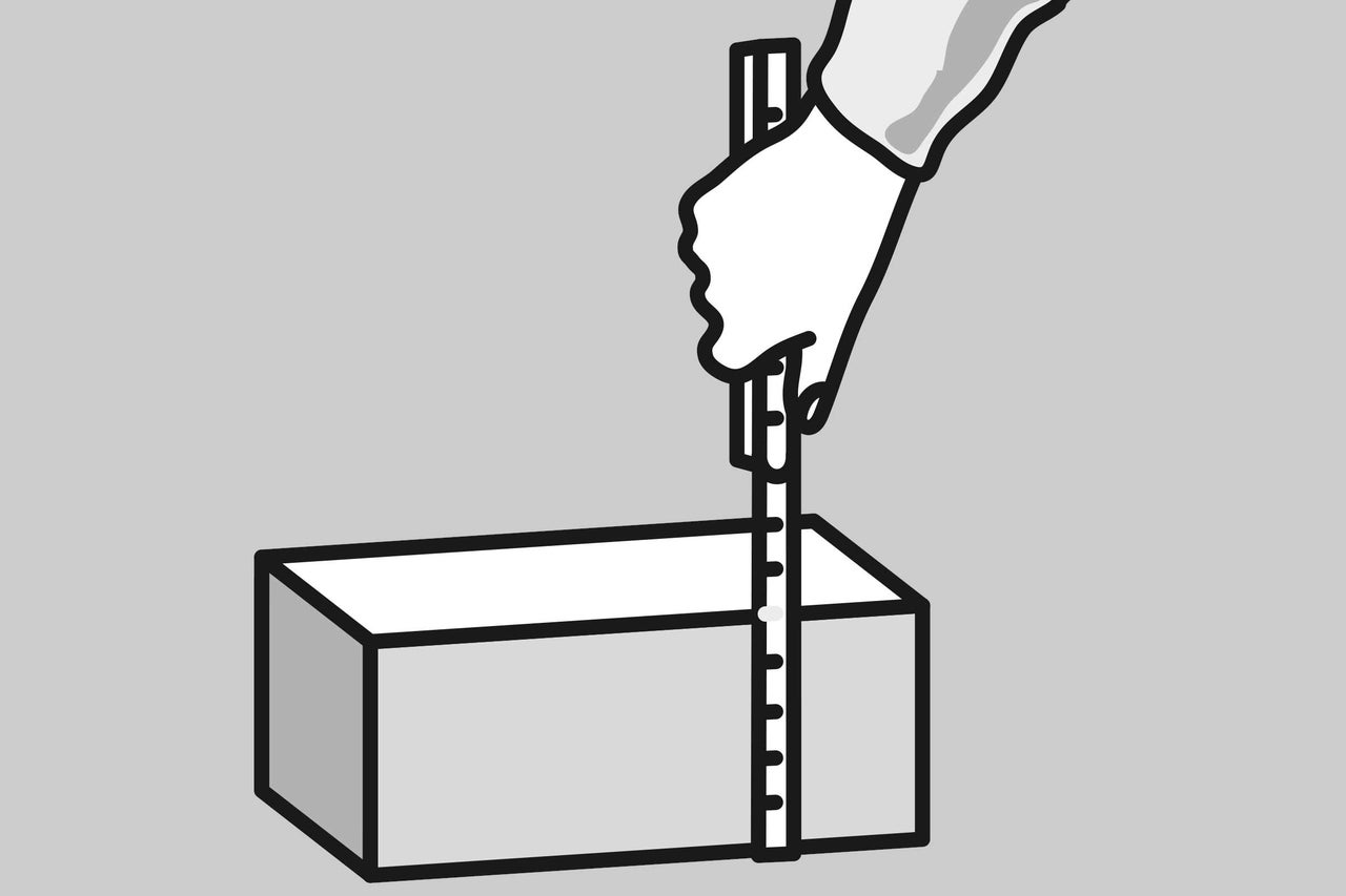 Profi-Tipp: Das Arbeiten mit dem Schichtenmass ist eine bewährte Prüfmethode, ob man mit seiner Mauer auch nach mehreren Reihen noch auf der richtigen Höhe ist. Nimm zunächst das Höhenmass eines Deiner verwendeten Steine.