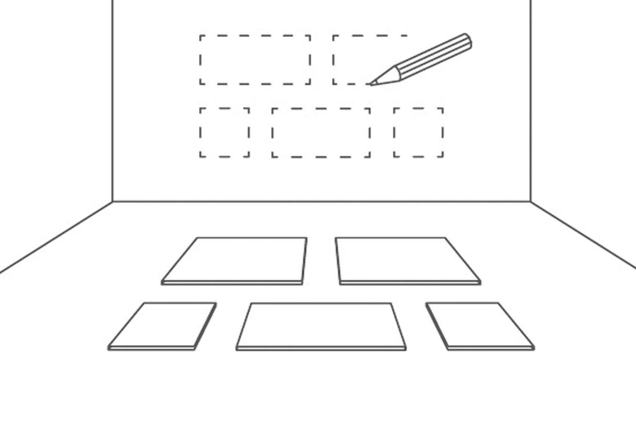 Lege die Wandkissen auf den Boden, um das Verlegemuster zu planen. Liegt es so, wie es Dir gefällt, kannst Du das Muster auf die Wand übertragen. Dabei kann auch Kreppband hilfreich sein.