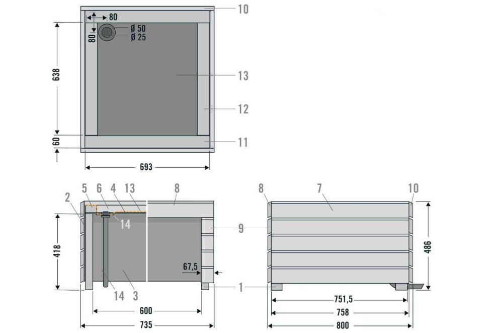 | 4 | 1 | Panneau de contreplaqué sérigraphié 8 x 751,5 x 680 mm |
