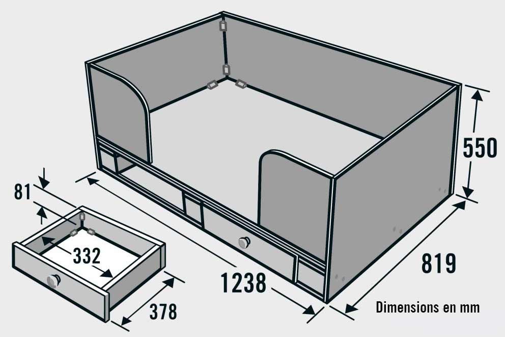 Fabrique les quatre tiroirs de la même manière et insère-les ensuite dans le lit.