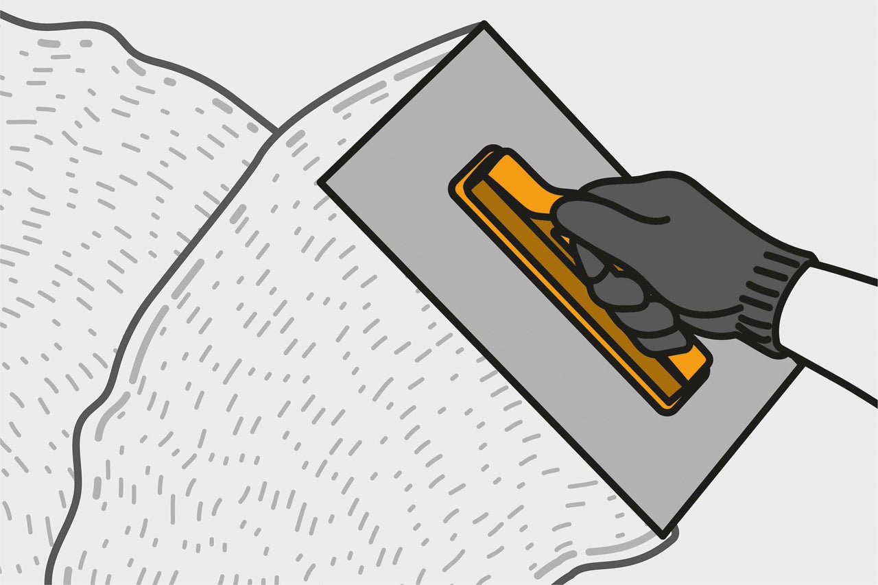 Une fois que la couche d'armature est complètement sèche, tu peux enduire le mur pour finir. Un enduit minéral est ici tout à fait adapté, car il peut absorber l'humidité de la pièce et la restituer. Il assure ainsi un bon équilibre hygrométrique dans la pièce.