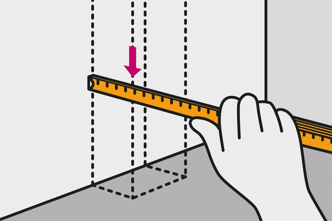 Commence par mesurer et marquer la distance entre le mur «réel» et l'ossature prévue.
