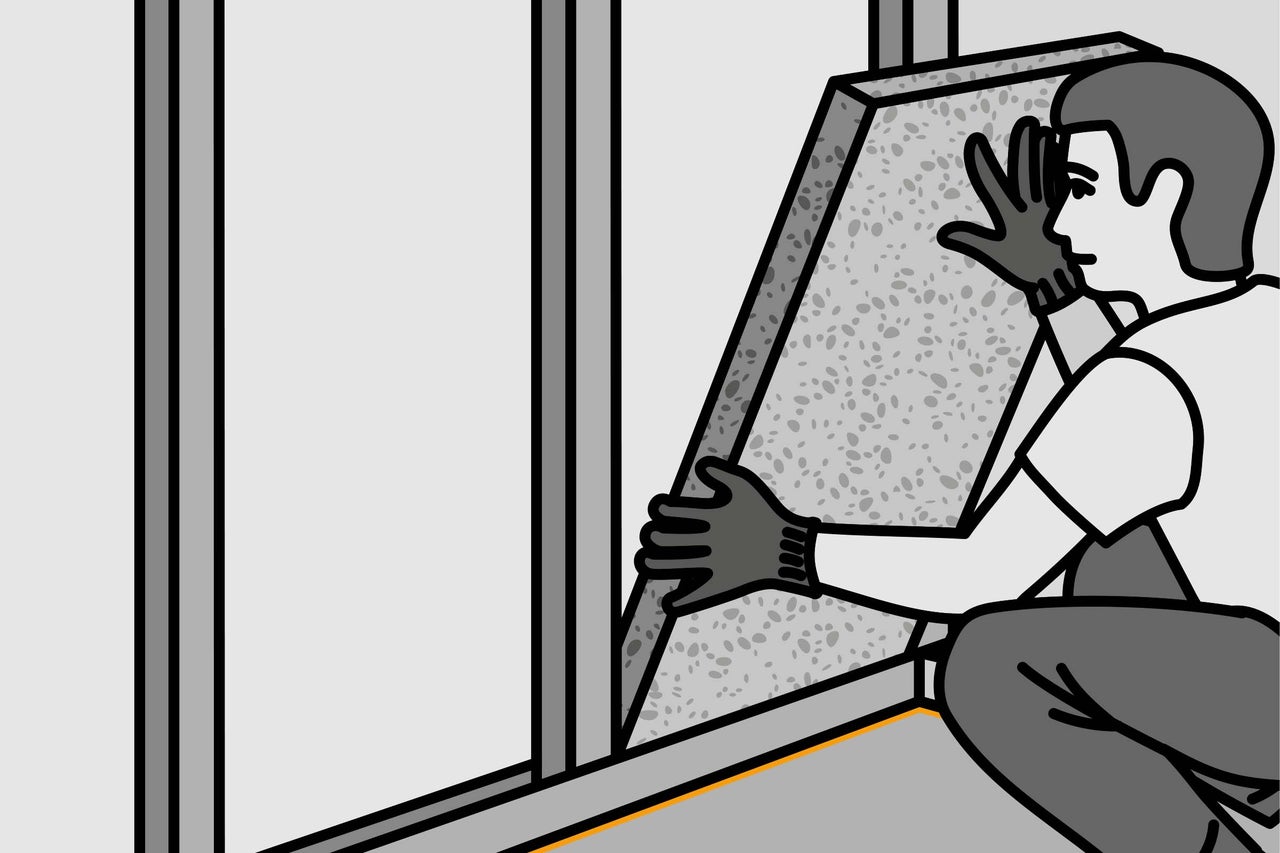 Commence par poser les panneaux isolants découpés sur toute la surface intérieure de l'embrasure de la fenêtre. Les panneaux affleurent le mur. Fixe ensuite les panneaux au mur de manière à recouvrir les bords des panneaux dans l'embrasure de la fenêtre. Tu obtiendras ainsi un bord net. Si tu n'y parviens pas parfaitement, tu peux poser des rails d'enduit pour obtenir une finition nette.